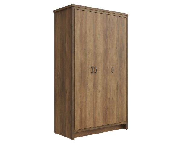 The Boston three-door wardrobe offers both hanging and shelf space allowing for both shoes and folded clothes to be stored away. The chunky panels – including 30mm tops – are neatly framed by the contrasting casing and accessorised by black metal handles that enhance the urban aesthetic perfect for your bedroom!